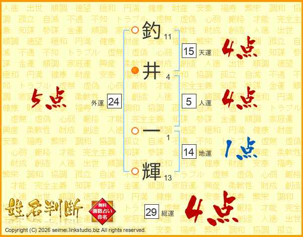 釣井一輝さんの天運は15画の4点!