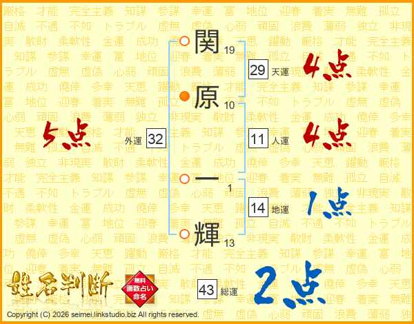 関原一輝さんの総運は43画の2点!