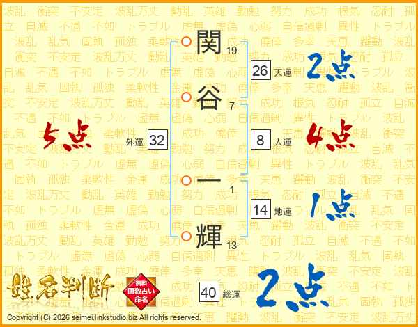 関谷一輝さんの天運は26画の2点!