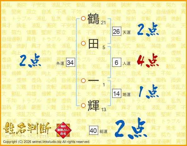 鶴田一輝さんの天運は26画の2点!
