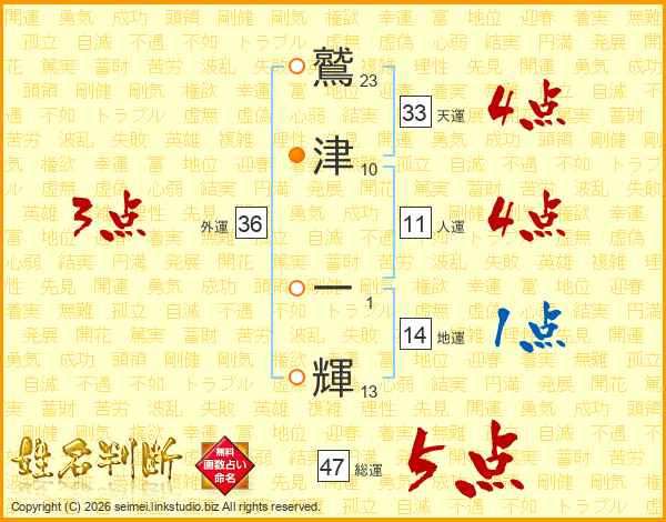 鷲津一輝さんの総運は47画の5点!