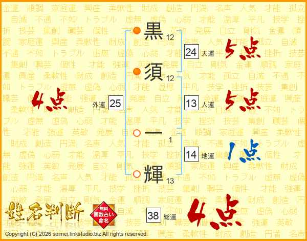 黒須一輝さんの総運は38画の4点!