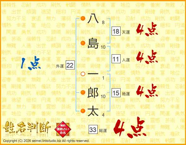 八島一郎太さんの総運は33画の4点!