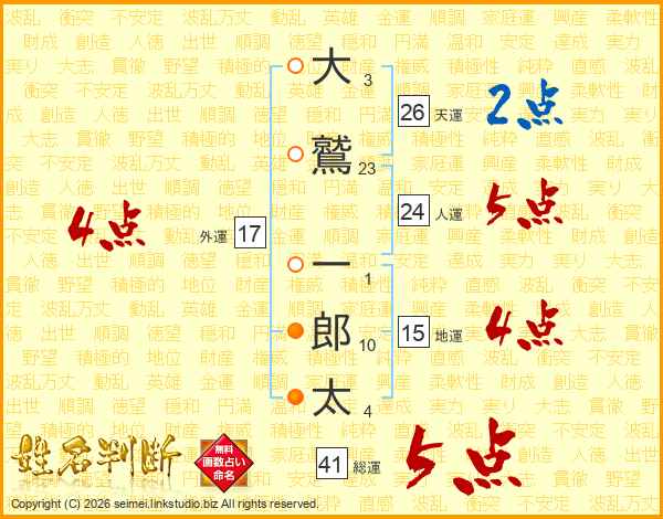 大鷲一郎太さんの総運は41画の5点!