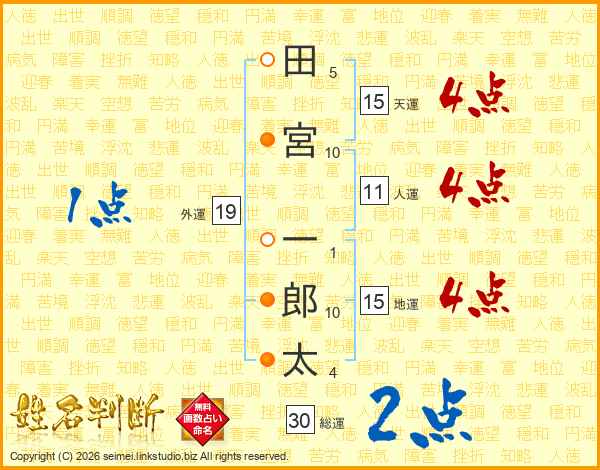 田宮一郎太さんの総運は30画の2点!