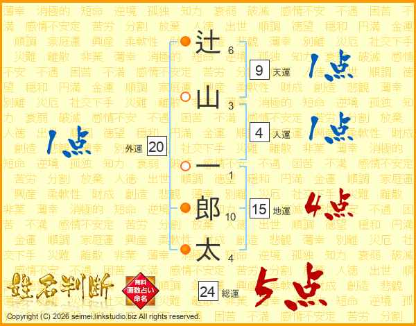 辻山一郎太さんの総運は24画の5点!