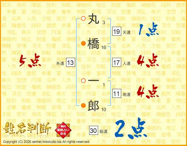 丸(3画)橋(16画) 一(1画)郎(10画)