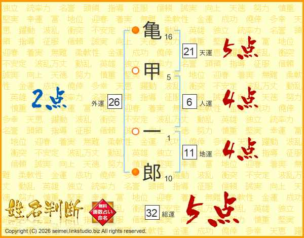 亀甲一郎さんの総運は32画の5点!
