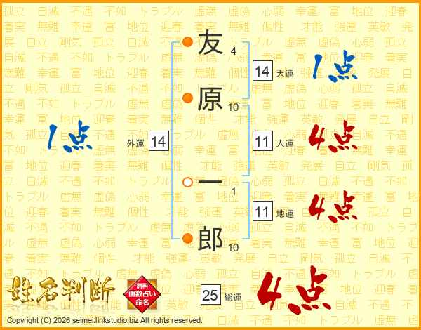 友原一郎さんの天運は14画の1点!