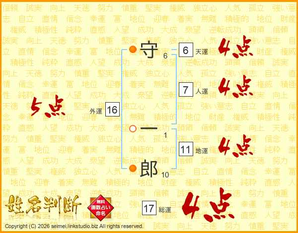 守一郎さんの総運は17画の4点!