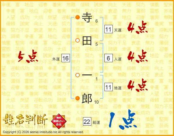 寺田一郎さんの総運は22画の1点!