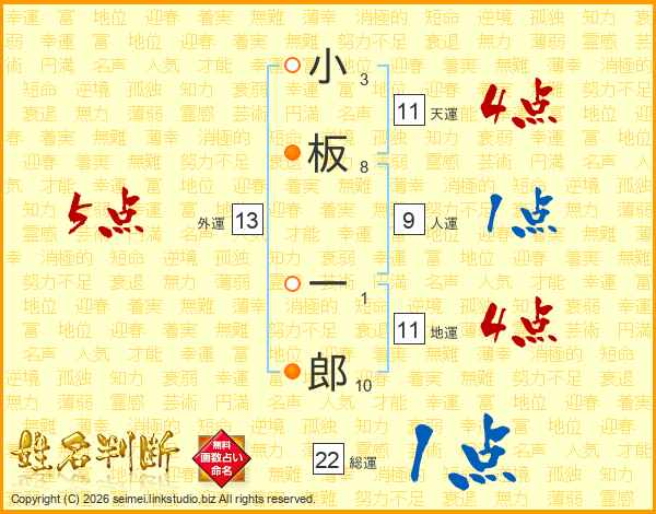 小板一郎さんの天運は11画の4点!
