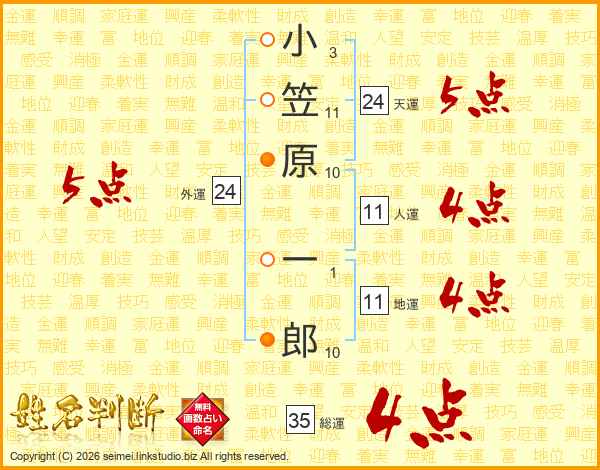 小(3画)笠(11画)原(10画) 一(1画)郎(10画)