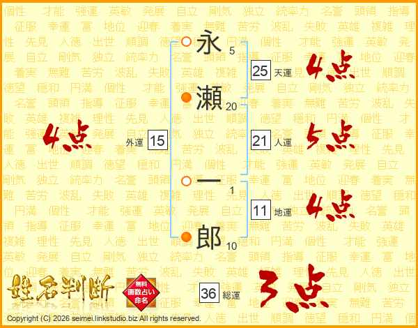 永(5画)瀬(20画) 一(1画)郎(10画)