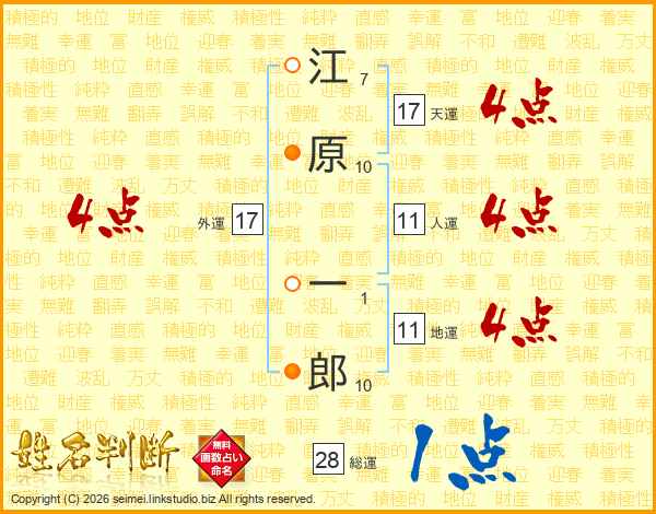 江原一郎さんの人運は11画の4点!