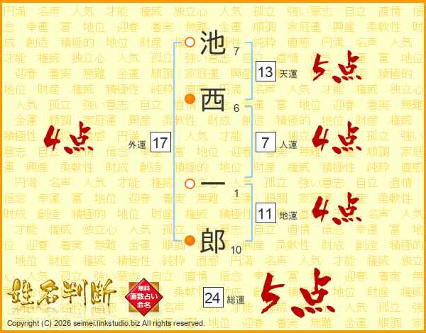池西一郎さんの総運は24画の5点!