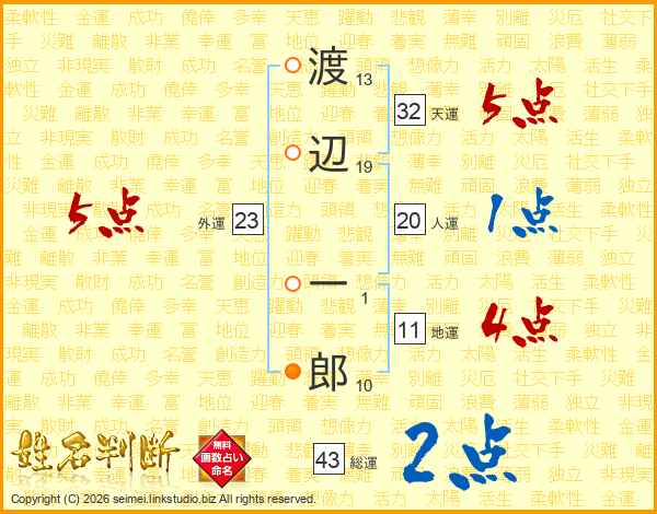 渡辺一郎さんの総運は43画の2点!
