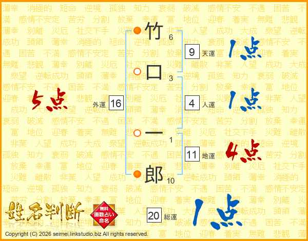 竹口一郎さんの地運は11画の4点!