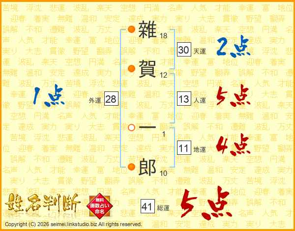 雜賀一郎さんの総運は41画の5点!