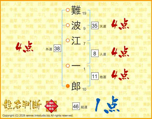 難波江一郎さんの総運は46画の1点!