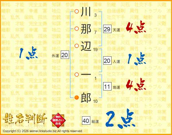川那辺一郎さんの総運は40画の2点!