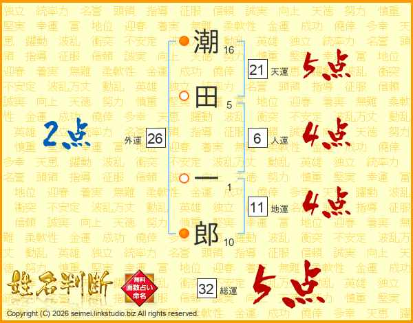 潮田一郎さんの総運は32画の5点!