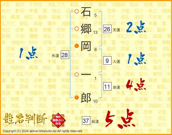 石郷岡一郎さんの総運は37画の5点!