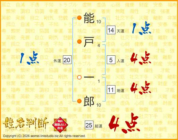 能戸一郎さんの総運は25画の4点!