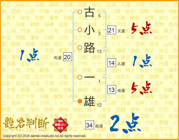古小路一雄さんの天運は21画の5点!