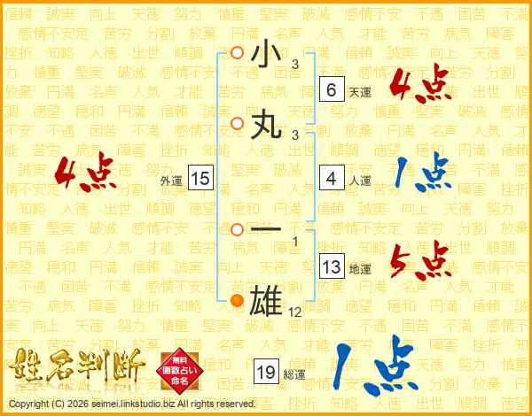 小丸一雄さんの総運は19画の1点!