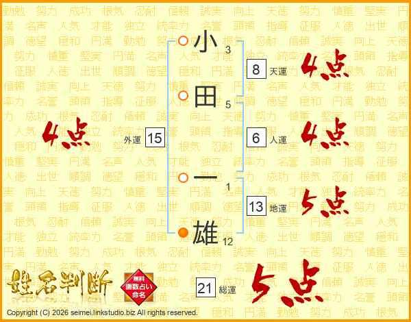 小田一雄さんの総運は21画の5点!