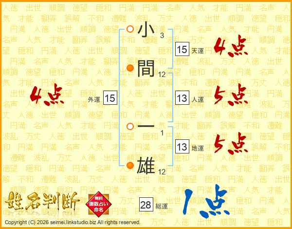小間一雄さんの人運は13画の5点!