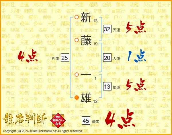 新(13画)藤(19画) 一(1画)雄(12画)