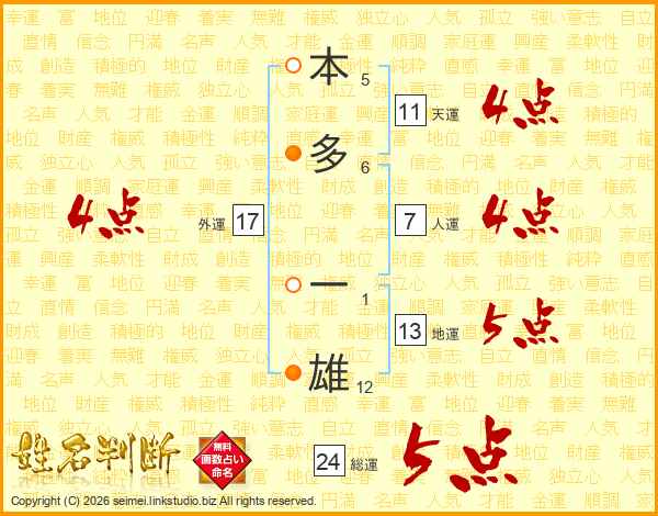 本多一雄さんの総運は24画の5点!