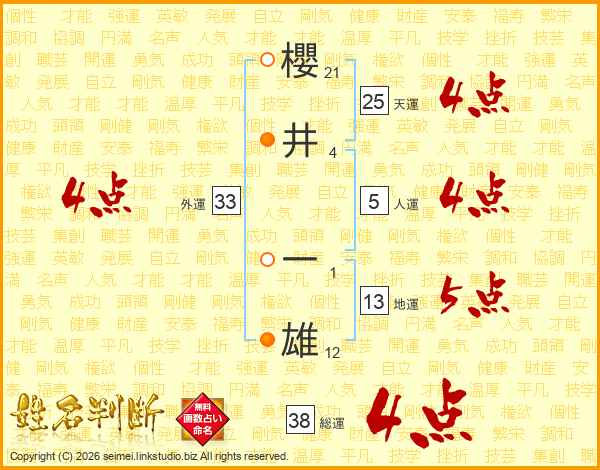 櫻井一雄さんの総運は38画の4点!