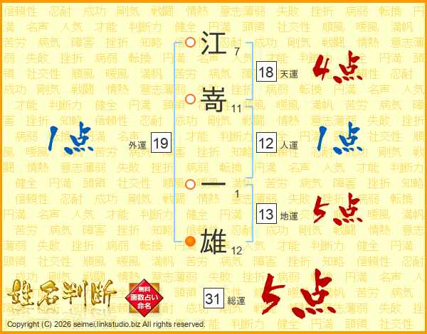 江(7画)嵜(11画) 一(1画)雄(12画)