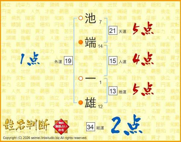 池端一雄さんの天運は21画の5点!