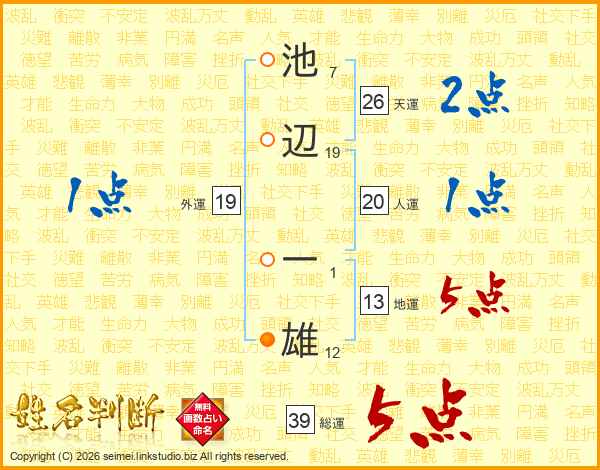 池辺一雄さんの総運は39画の5点!