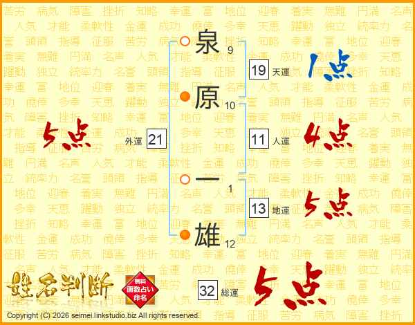 泉原一雄さんの総運は32画の5点!