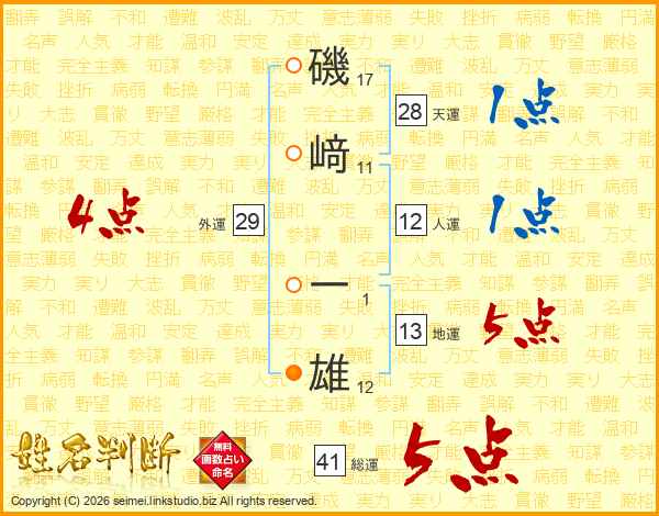 磯﨑一雄さんの総運は41画の5点!