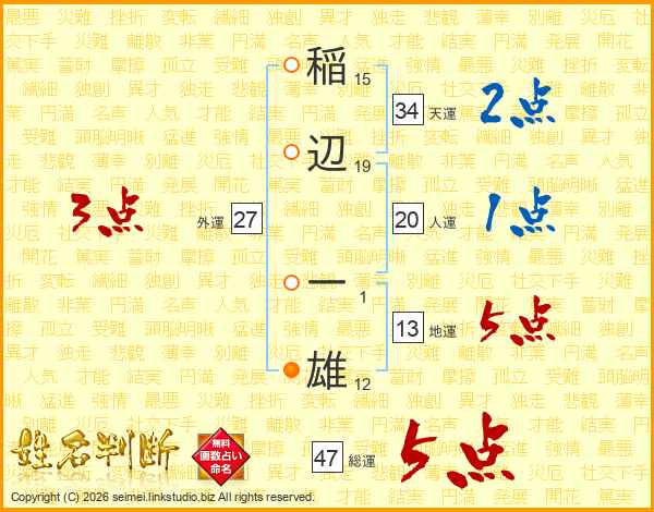 稲辺一雄さんの総運は47画の5点!