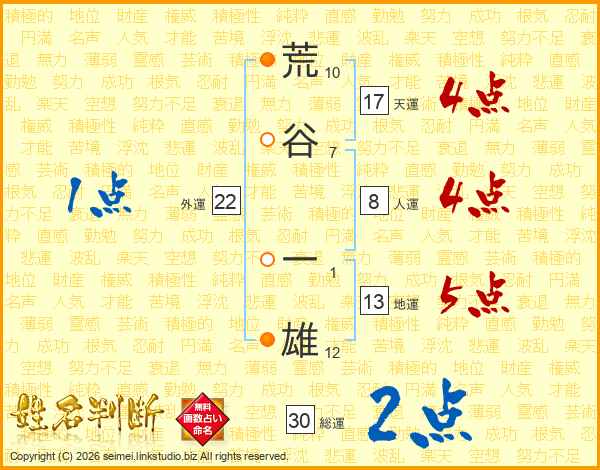 荒谷一雄さんの総運は30画の2点!