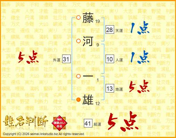 藤河一雄さんの地運は13画の5点!
