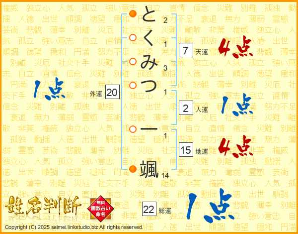 とくみつ一颯さんの総運は22画の1点!