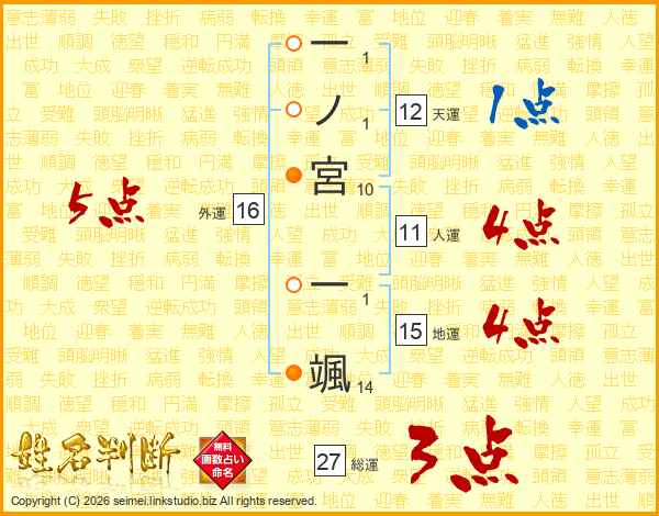 一ノ宮一颯さんの外運は16画の5点!