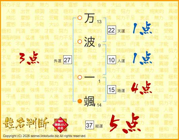 万波一颯さんの総運は37画の5点!