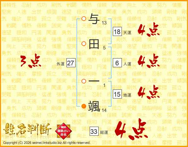与田一颯さんの総運は33画の4点!