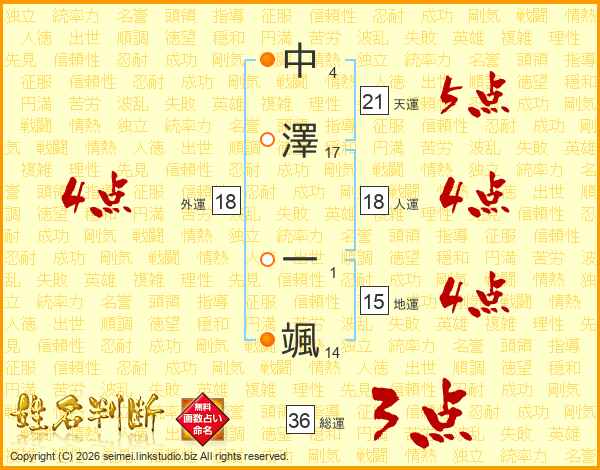 中澤一颯さんの人運は18画の4点!