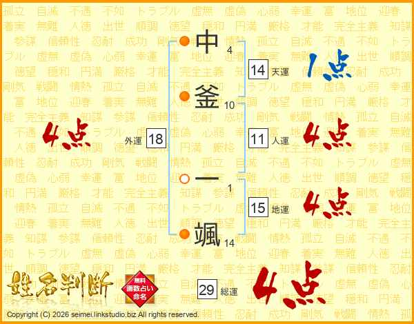 中釜一颯さんの総運は29画の4点!