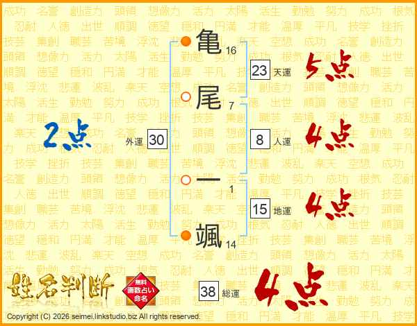 亀尾一颯さんの総運は38画の4点!